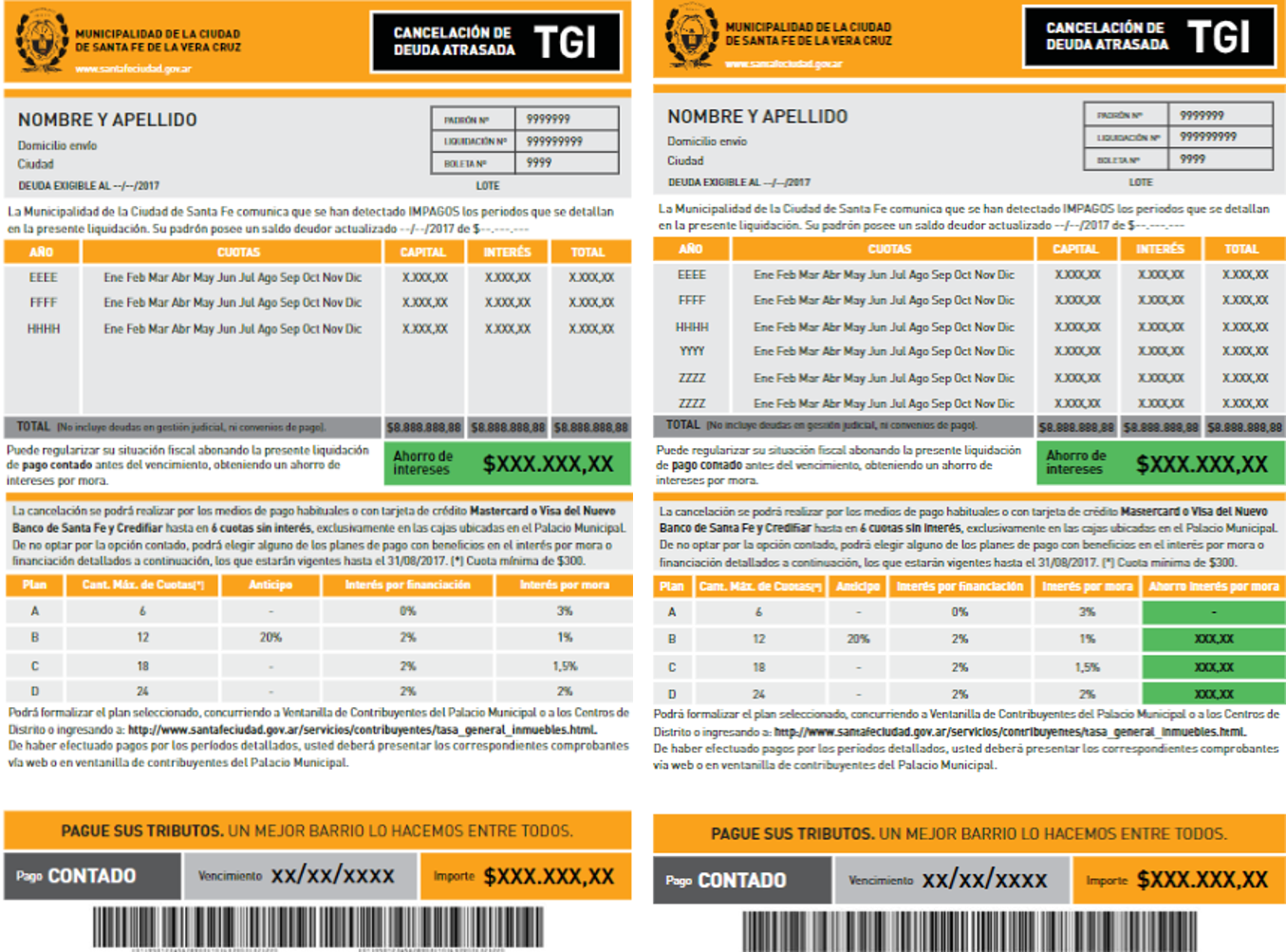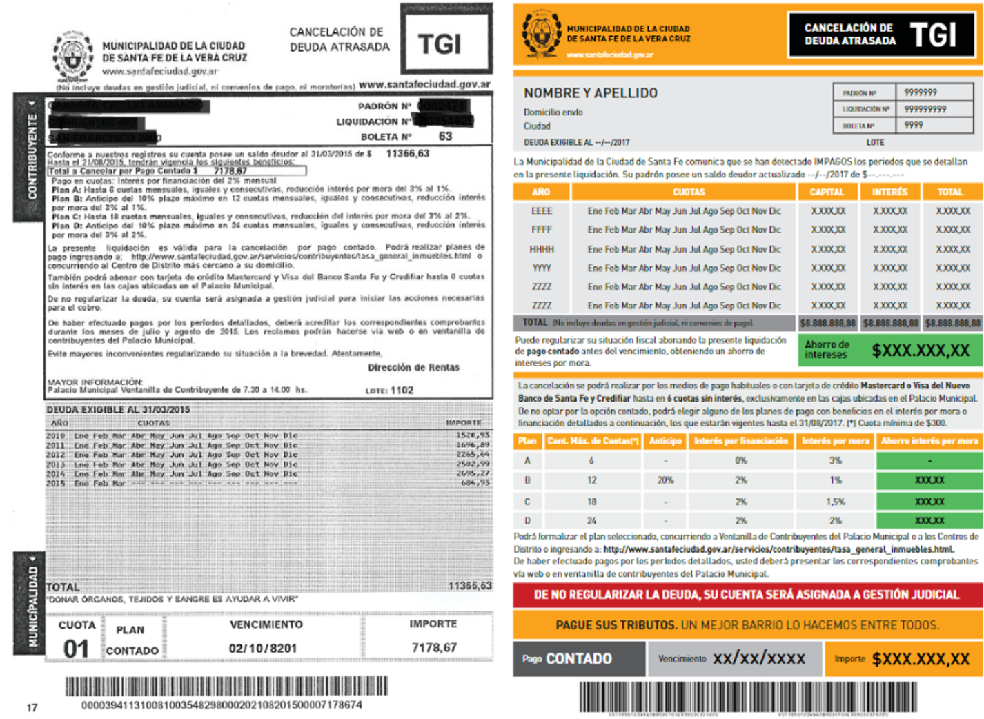 • It is also important to note that each notice includes a payment stub to make the single installment payment. Therefore, while those who decide to pay the single installment can go straight to a bank and make the deposit, those who want to pay off their debt using a payment plan have to register online to get the corresponding payment stub or visit the city government offices. Despite the notice including a clearly explained procedure to follow, the transaction costs are much higher for those would prefer a payment plan, which could hinder their adoption.